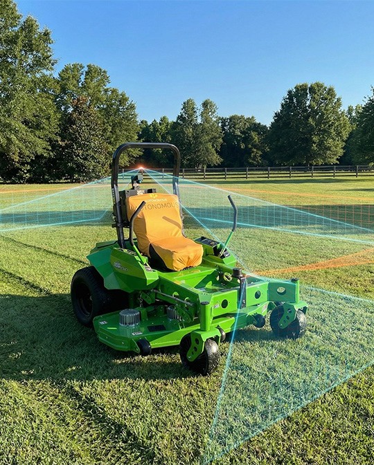 Unlike fully autonomous large-frame commercial mowers, Sidekick is able to operate at 12mph, even in unpredictable public areas, because the safety sensors work alongside human supervision.